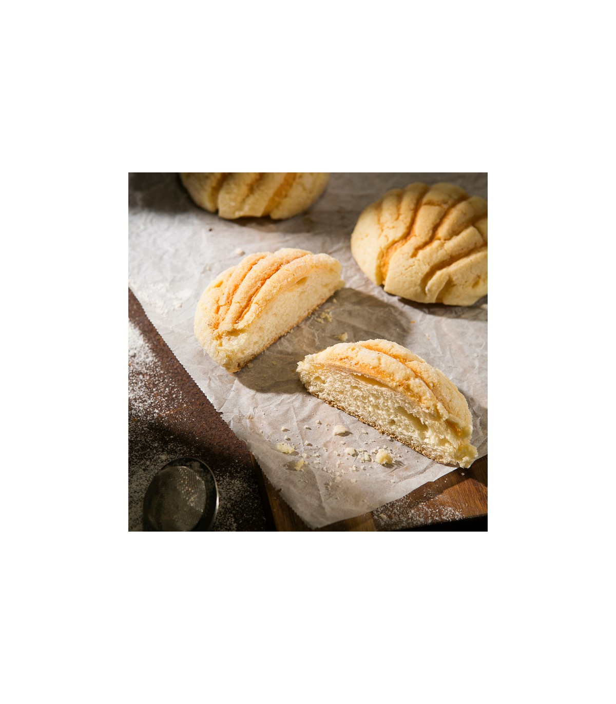 Bollo suizo cubierto de pasta de azúcar al horno en forma de concha.