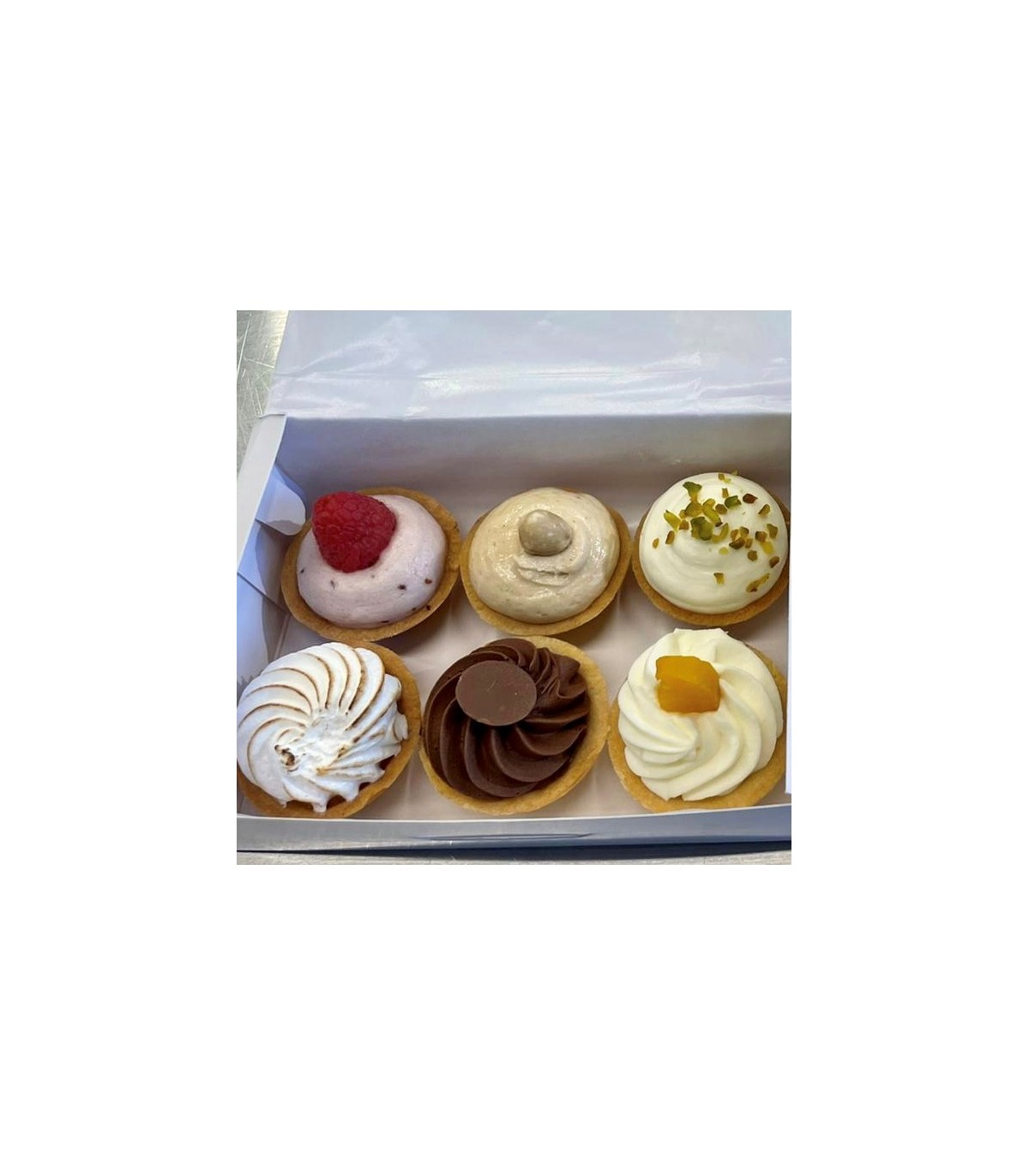 Cajita con 6 tartaletas mini, con base de pasta brisa rellena de: