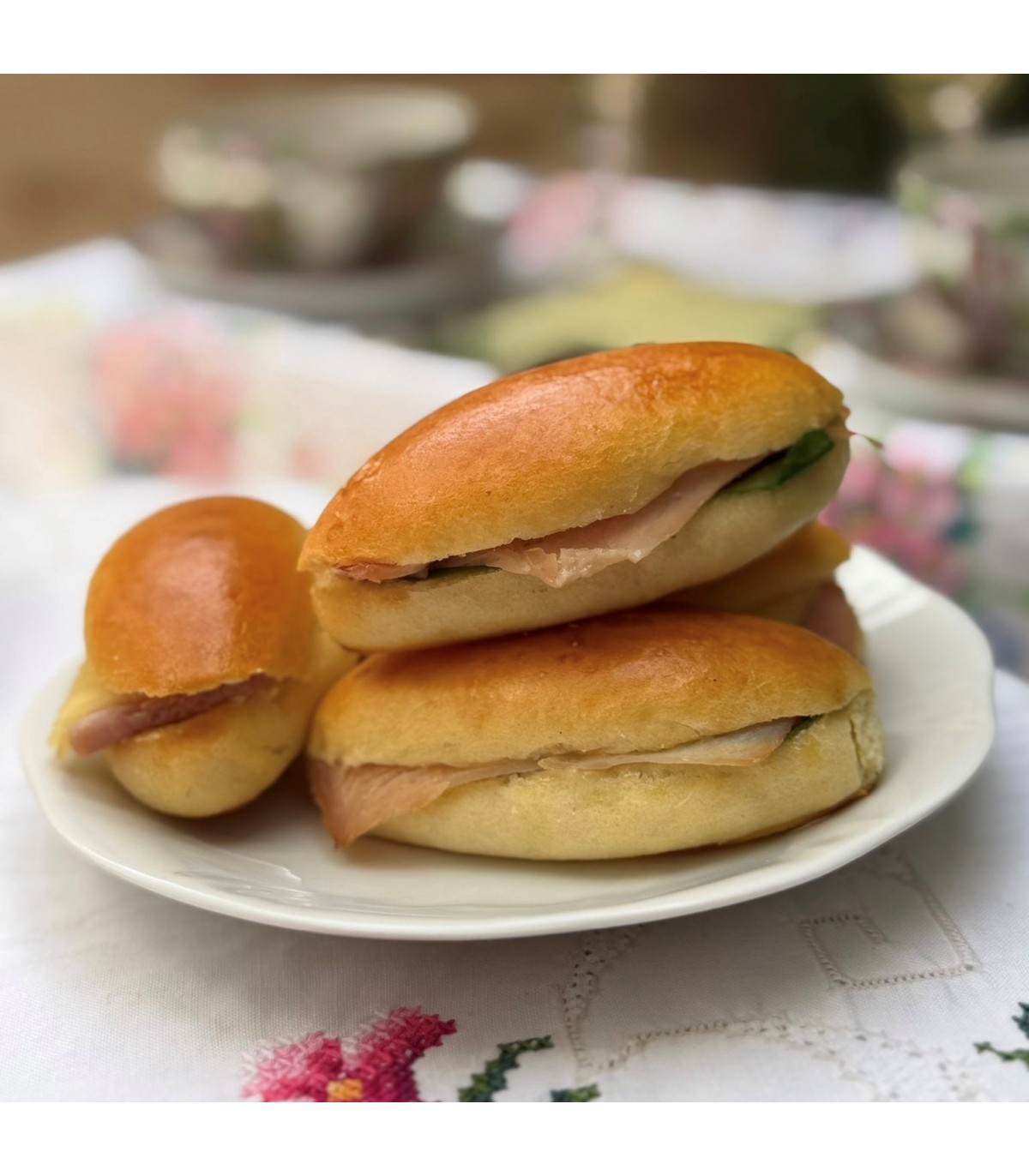 - Cuatro medias noches saladas variadas: dos de jamón de york y queso, y dos vegetales con pavo.