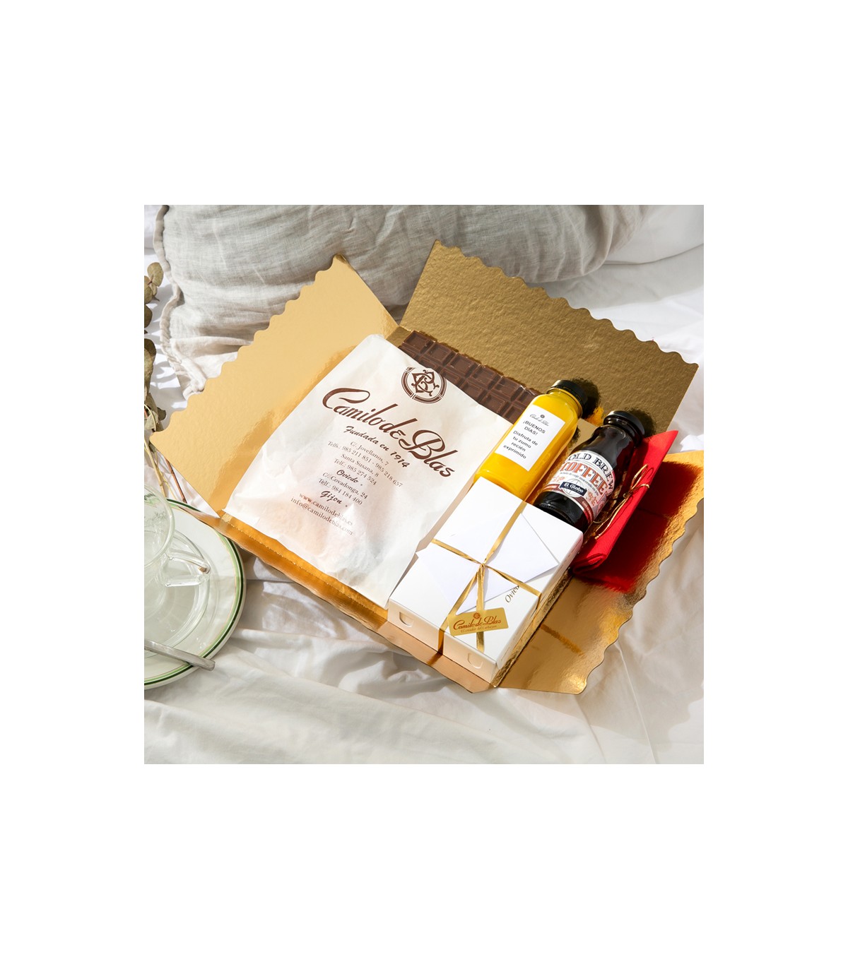 - Caja convertible en mantel: incluye una servilleta con lazo y un sobre con mensaje(*)