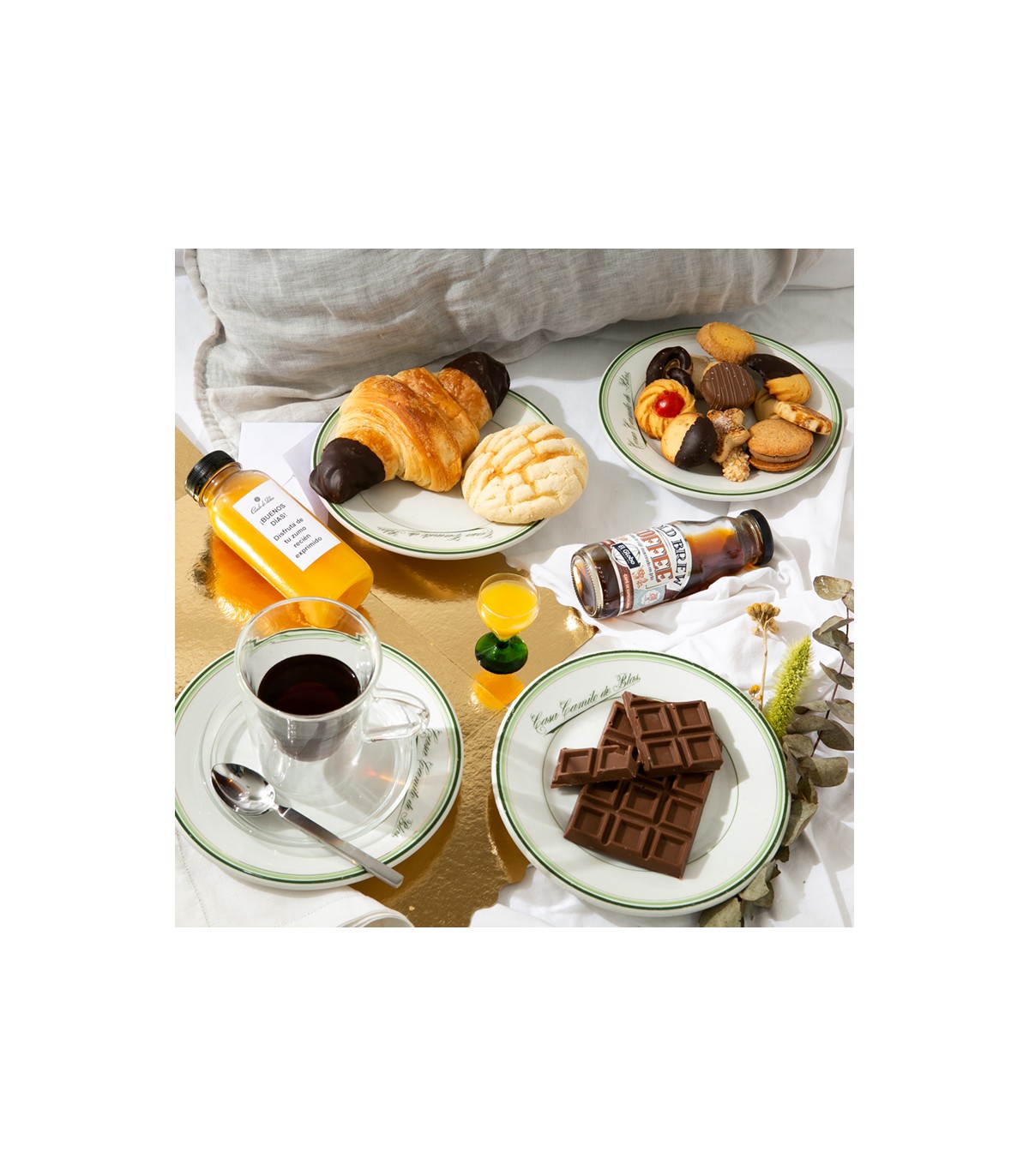 Para los que les gusta desayunar lo de toda la vida: una media luna, unas pastas, y para terminar una onza de buen chocolate.